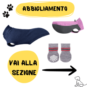 Anche l’utilizzo di calzini o scarpette tecniche durante le uscite possono aiutare l’animale a patire meno il freddo. Sono di fatti tra i vestiti invernali per cani più richiesti. Ne sono un esempio Trixie Protezioni per le zampe Walker Care e Trixie Calze per cani. Questi accessori oltre a proteggere le zampe ed i polpastrelli del cane dal freddo, dal ghiaccio e dal contatto con suoli accidentati, possono aiutare anche nei casi in cui il cane soffrisse di allergie e tendesse a leccarsi le zampe con insistenza. I calzini infatti, ricoprendo la zona interessata delle zampe, consentono al cane di guarire più facilmente e prevenire eventuali irritazioni e/o infezioni dettate dal un lungo leccarsi. Sono molto utili e consigliati in fase post operatoria, qualora il vostro fido avesse subito interventi, sempre per evitare che le zampe del cane a contatto con il suolo, generalmente sporco e non igienico, possano scatenarsi delle infezioni.