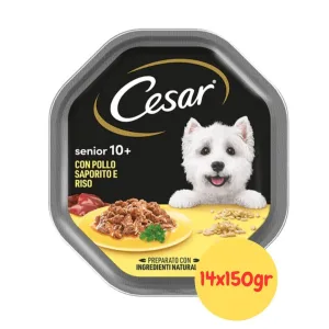 Cesar per Cani Senior 10+ con Pollo Saporito e Riso in Salsa – 14 x 150g